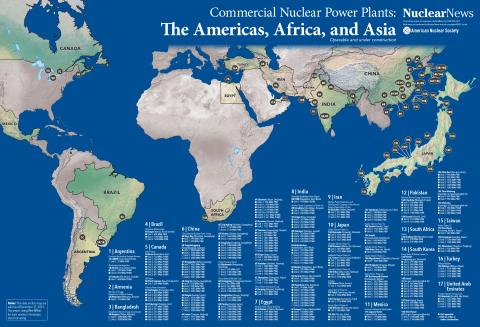 2019 Nuclear News Worldwide Wall Map Of The Americas Africa And Asia Commercial Nuclear Power Plants Ans Ans Store Power Plant Maps Totally Defeated Crossword Clue